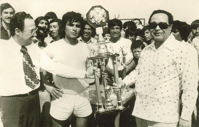Campeón C.F. Real Paraiso. Roberto Mancillas Capitán del Equipo con el trofeo.