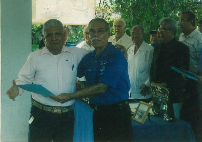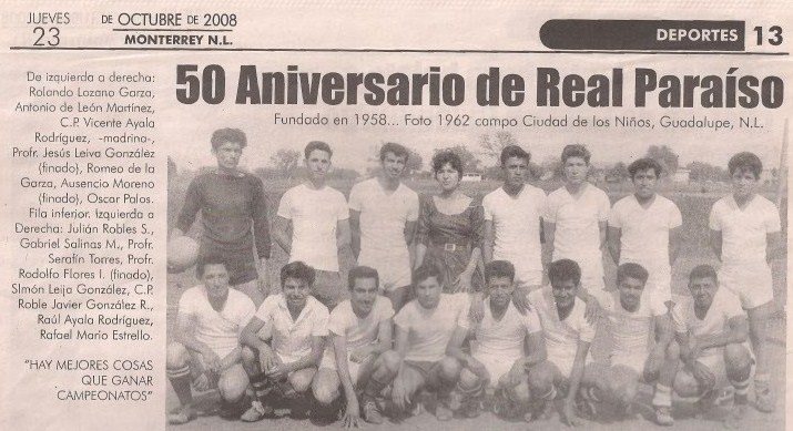 En la foto al fondo atestiguando la entrega de diplomas de izquierda a derecha: Sr. Juvel Santa María, Lic. Adrián Yáñez Martinez, Profr. Francisco Javier Guadiana Cárdenas y Ramón Betancourt Cabello, grandes personalidades de Cd. Guadalupe, N.L. y fieles colaboradores del C.F. Real Paraiso.