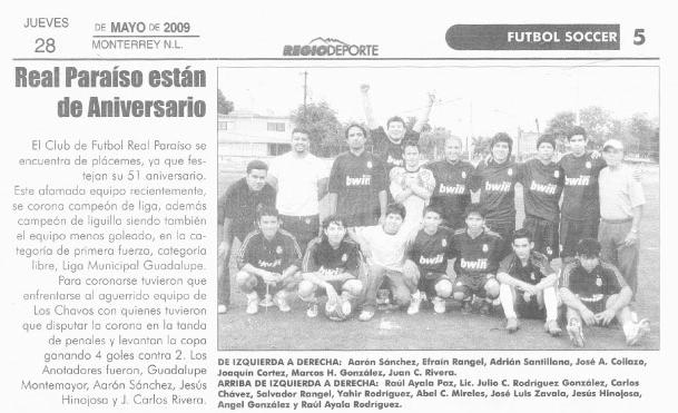 El campeonato quedó plasmado en el Periódico Regio Deporte del día 28 de Mayo de 2009